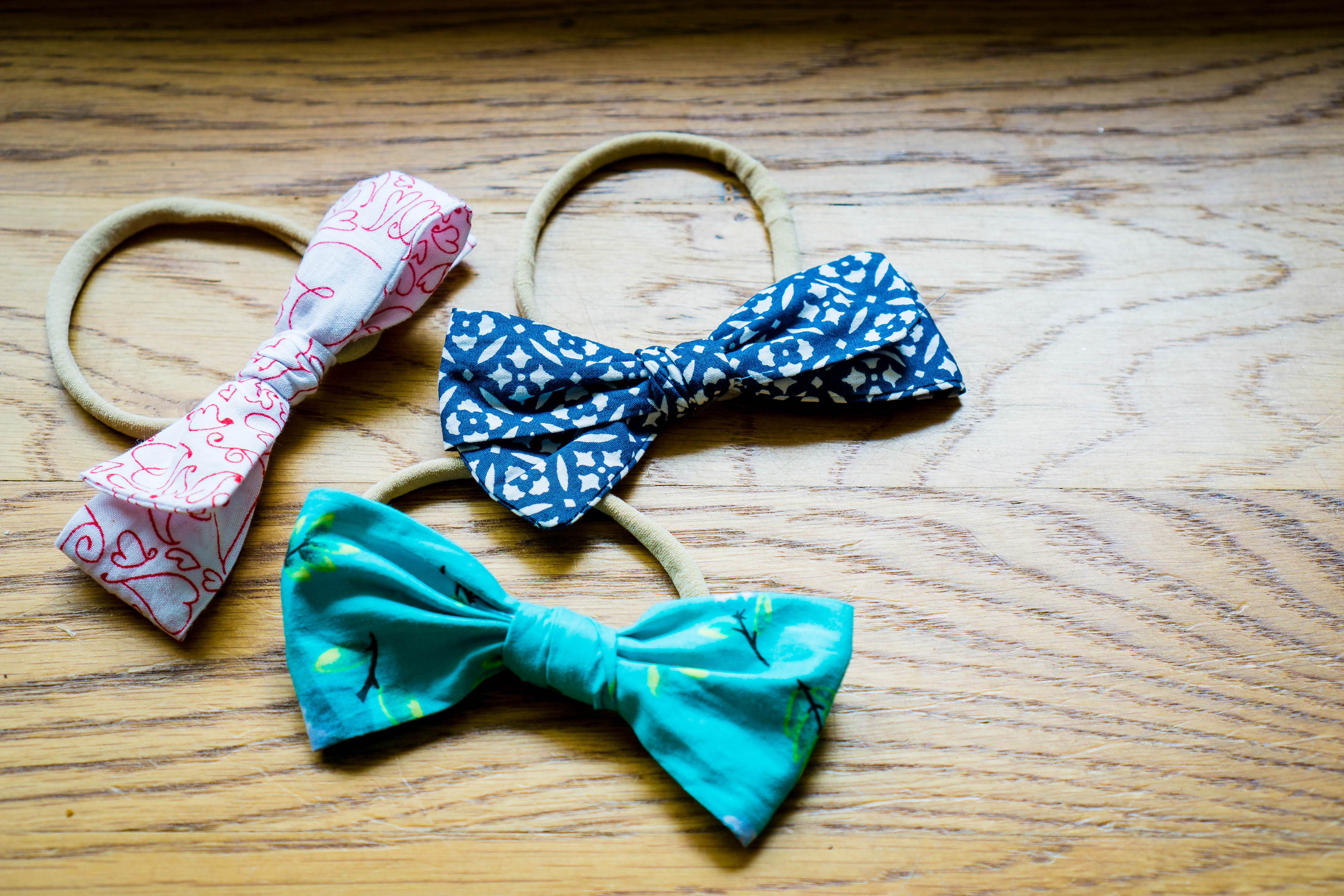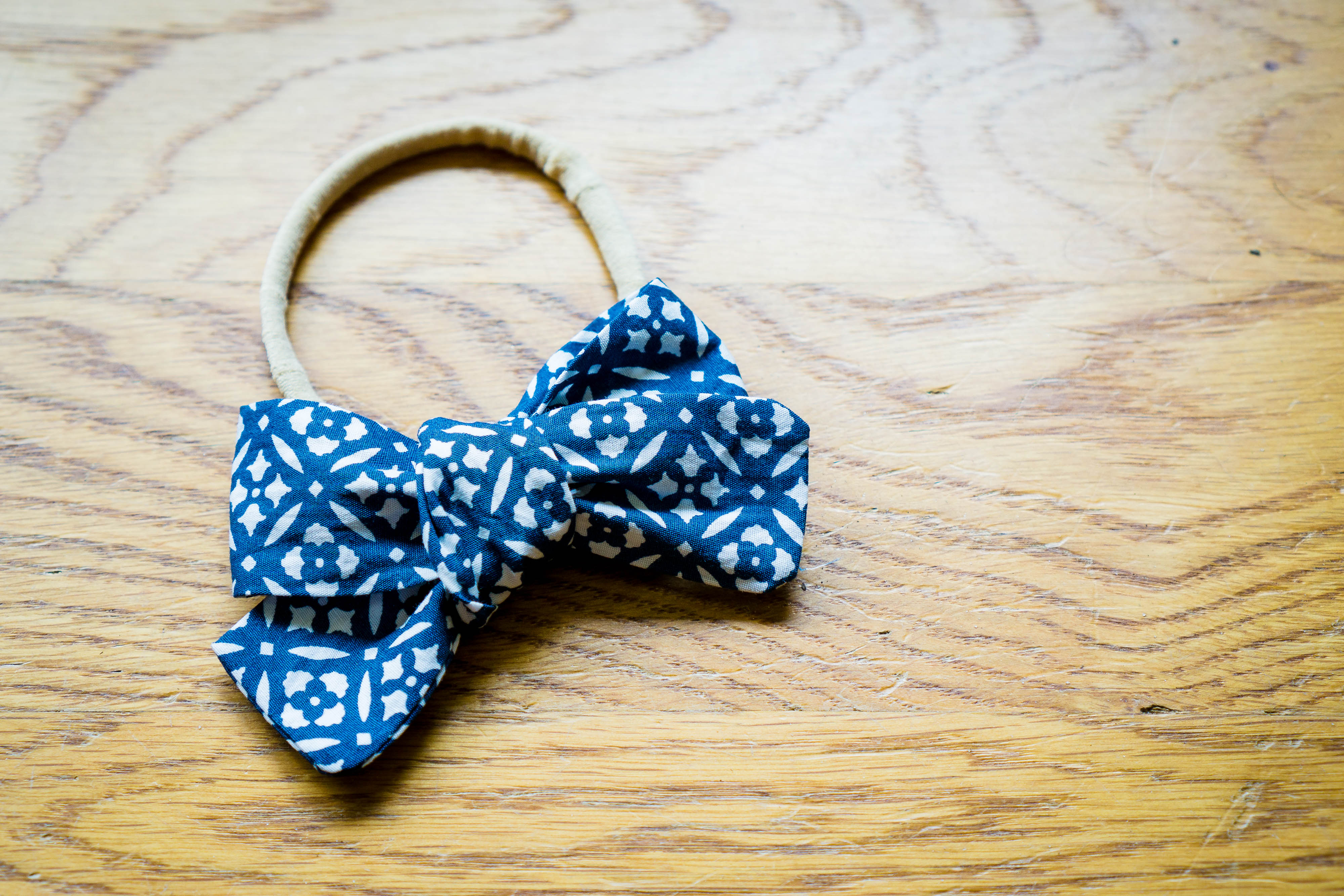 This style is so easy to sew but takes a little practice to tie. The thing I like the most…since I’m not having to glue them to the headband I can untie them down the road and tie them back on clips!