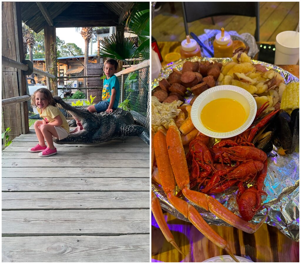The first is my favorite – The Crab Shack. If you’re looking for seafood look no further – the Crab Shack has what you want! It also has alligators and birds and cats so it’s not only good food but it’s entertaining for kids, mine ask to go at least once a month and anytime they are with me on Tybee they are begging for “that place with the alligators”.